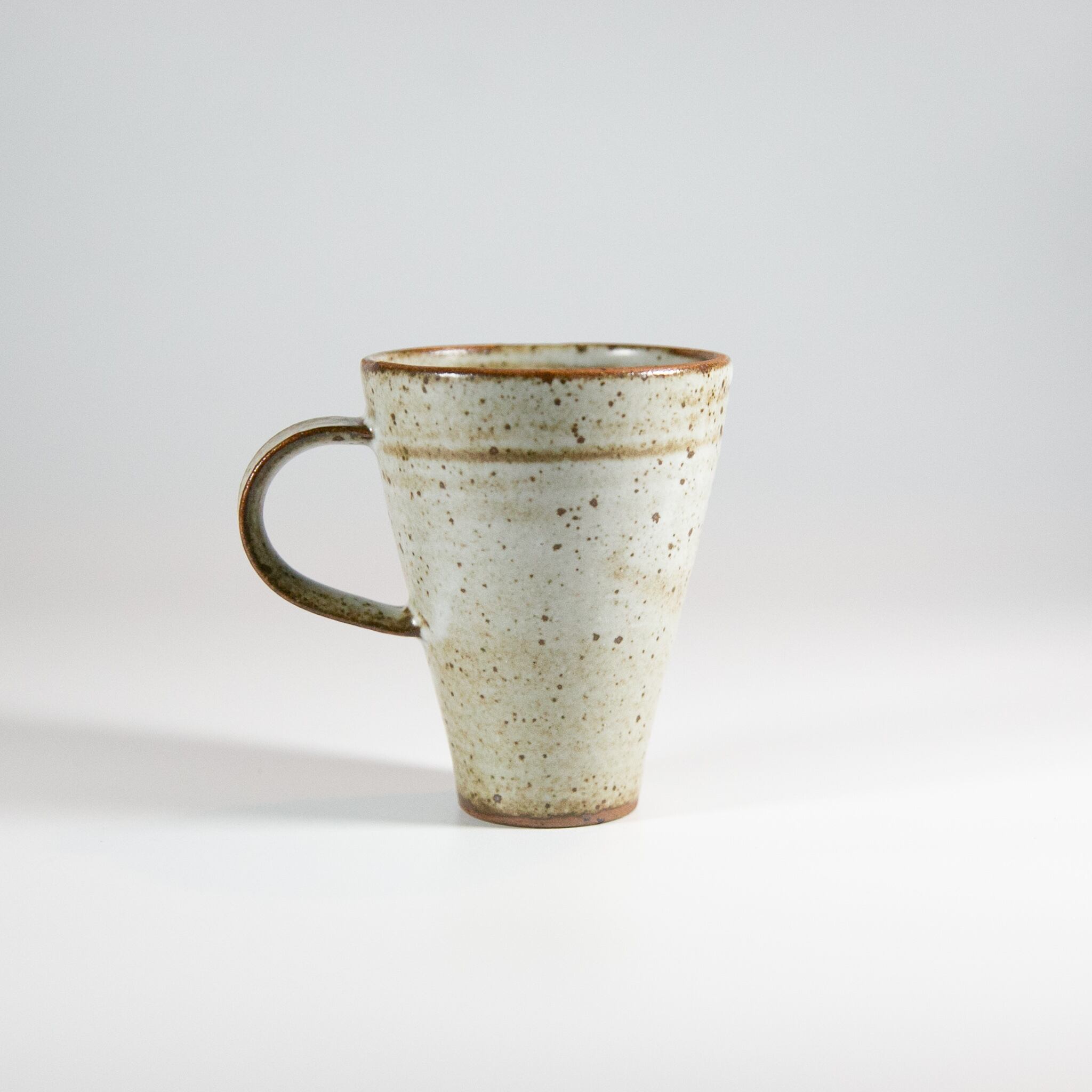 信楽の赤土にマット調の白釉を掛け、1250度で還元焼成焼しています。還元焼成することで粘土の鉄分と雲母が反応し、器ごとに個性的な模様が浮かび上げっています。ほんの少し緑がかったグレーという色調で、全体に優しい雰囲気の器です。